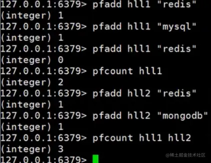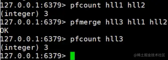 pfcount key...:计算key中的基数,可以合并计算多个key