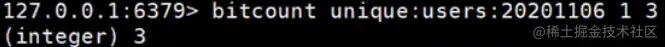 bitcount key start end:统计字符串从 start 字节到 end 字节比特值为1的数量,start 和 end 参数的设置可以使用负数值:-1表示最后一个字节,-2表示倒数第二个字节-