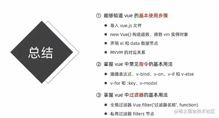 - vue 提供了 v-for 列表渲染指令,用来辅助开发者基于一个数组来循环渲染一个列表结构。v-for 指令需要使 用 item in items 形式的特殊语法,其中: items 是待循环的数组 item 是被循环的每一项