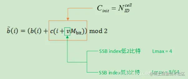 7) 由于SSB,半帧指示,2nd&3rd SSB index比特不加扰(步骤2已经获得),可以直接获得;2nd&3rd SSB index/小区ID比特确定加扰序列,解扰;