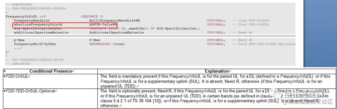 在上行频点信息中,absoluteFrequencyPointA的值也是直接配置的,不过这仅限于FDD或者SUL情况下。
