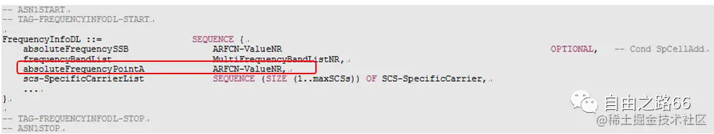 通过下面的红色下划线的注释说明可以知道,PointA的起始位置并不是小区配置的带宽的起始位置,其起始位置以及载波总带宽还需要通过SCS-SpecificCarrier来确定。