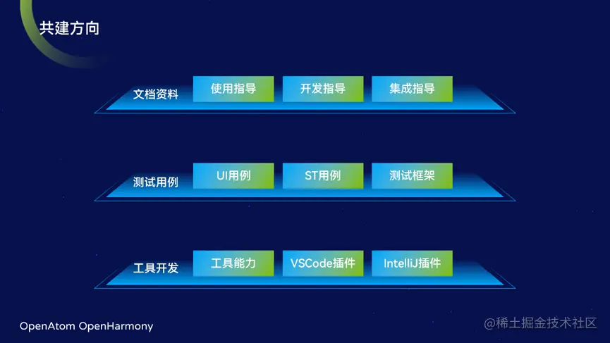 目前深开鸿主导的辅助工具SIG组主要提供给开发者文档资料、测试用例和工具开发3个共建方向。