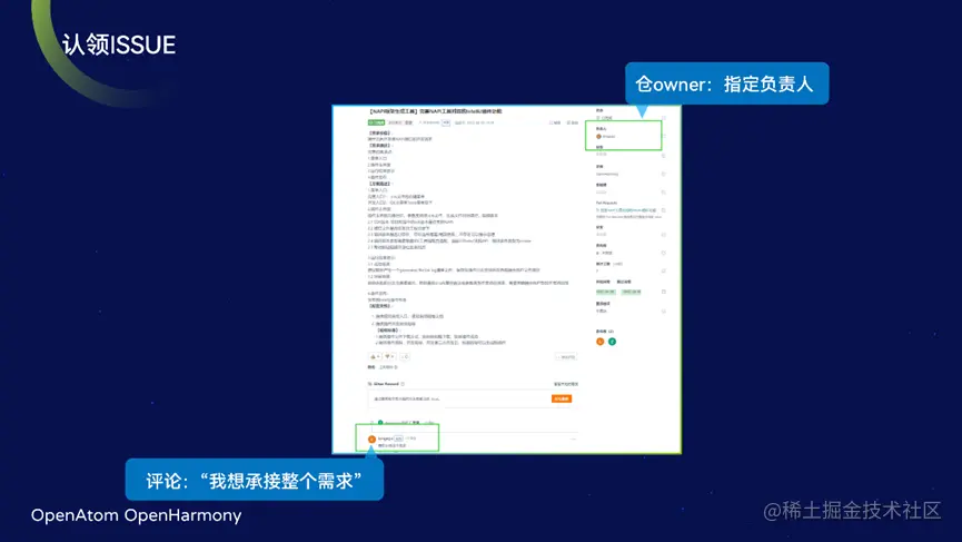 登录找到想要认领的问题单的页面,在评论中表达出想要承接这个需求的意愿,SIG的负责人会定期跟踪这些问题单并做出答复。