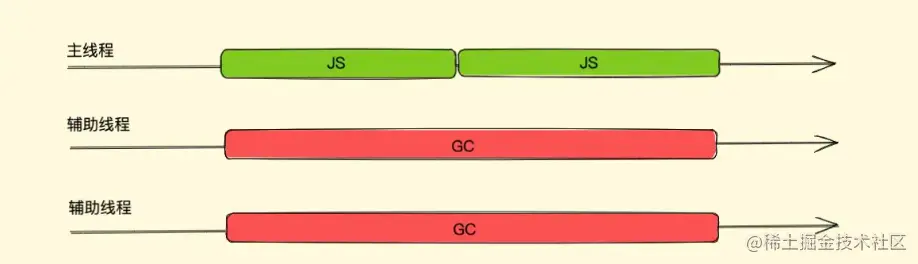 因此,V8 中使用了并发回收的机制,在主进程继续执行 JS 的条件下。开启多个辅助线程执行 GC,但也是难点,需要特殊的读写锁机制来控制堆中的引用关系。