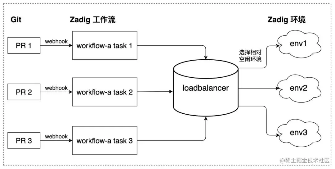 使用 Zadig 可实现环境的负载均衡,零人工干预实现从代码变更 -> 发布到环境中做自测/联调/测试验证。且支持团队成员并行开发、发布、验证,最大化团队合作带宽。