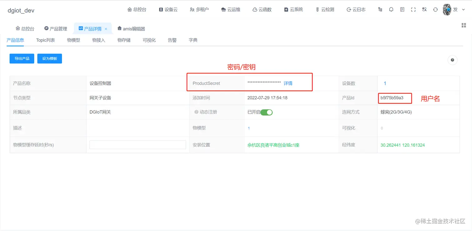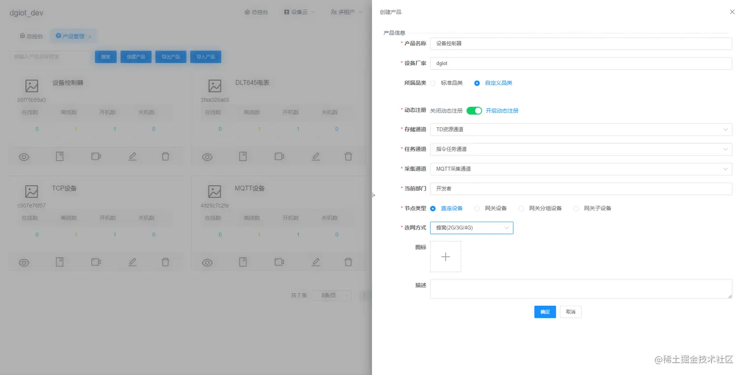 1.在平台上创建产品,如下图为例。