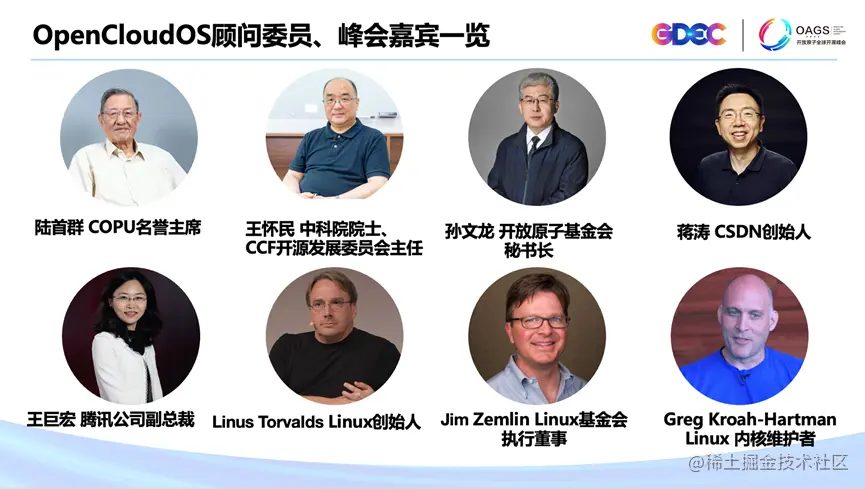 此外,OpenCloudOS 社区顾问委员会也在会上成立,由来自海内外知名院士专家、开源届行业领袖、技术领域大咖等8位专家组成,指导社区进行前瞻性的布局研究。