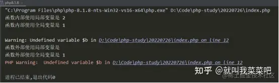 可以看出,在函数外部去访问函数内部创建的变量b,但访问$a不会报错。
