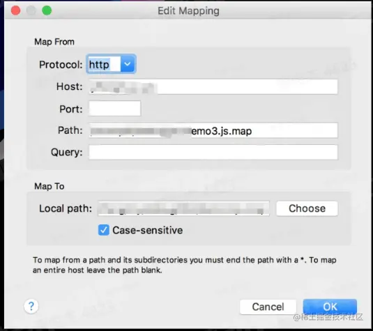线上环境的代码是打包压缩的,且没有 source map 文件,排查定位问题不方便,这时可以使用 Charles,配置 Map Local,将线上环境代理到本地,运行本地文件,本地有 source map就能快速定位到问题啦。