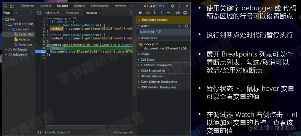 - 展开 Call Stack 可以查看当前 javaScript 代码的调用栈