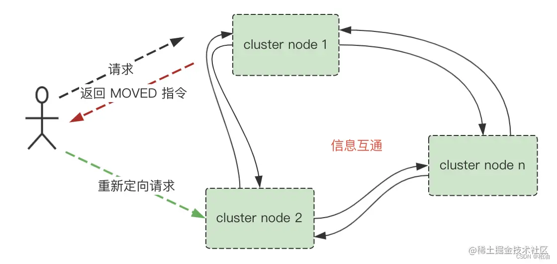 值得注意的是,redis cluster 客户端也会记录这份映射关系,方便直接将请求发送到对应的节点。当然,集群节点也可能发生变化,因此,会通过一些通知让客户端感知到并做相应更新。