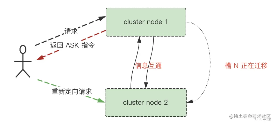 这个过程不会刷新客户端缓存,因此,流程上还是会走「原节点 -> ASK 重定向目标节点」这一流程。