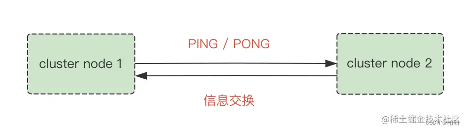 集群中的各个节点会通过互相发送消息的方式来交换集群中各个节点的状态信息,例如某个节点是处于在线状态、疑似下线状态(PFAIL),还是已下线状态(FAIL)。