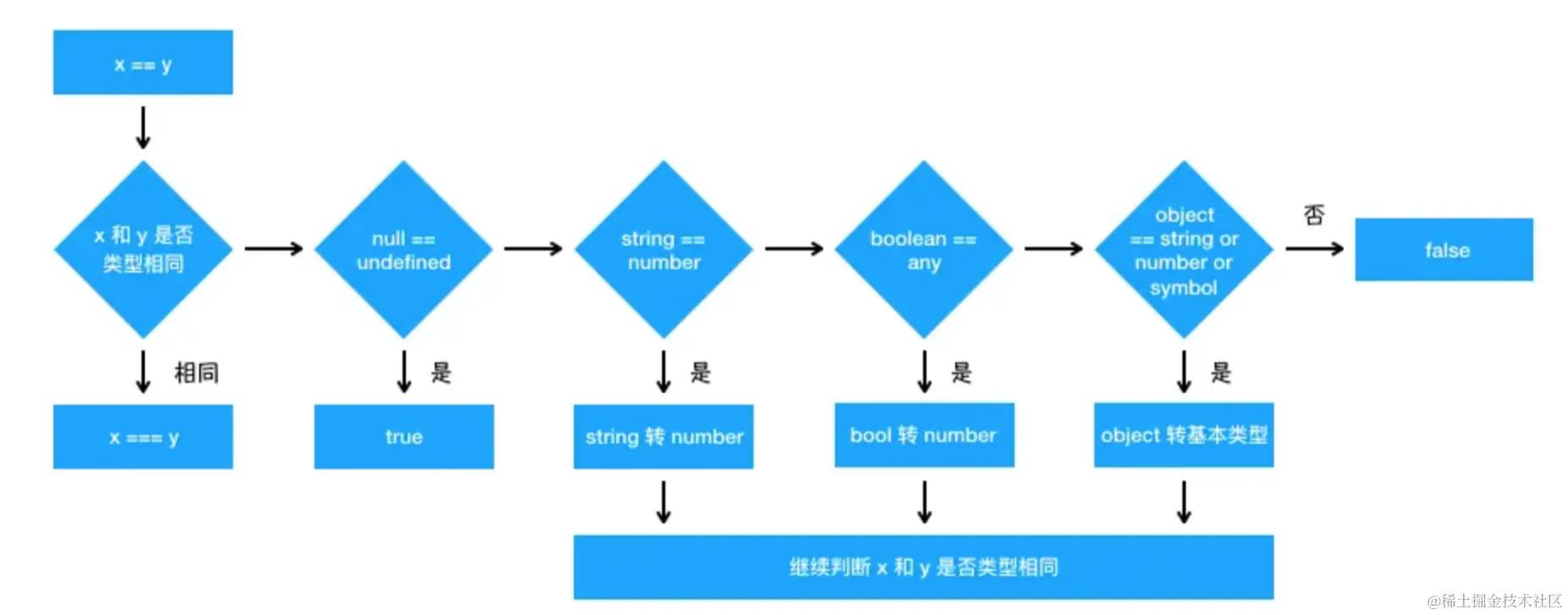 (1) 如果 Type(x) 是数字,Type(y) 是字符串,则返回 x == ToNumber(y) 的结果。