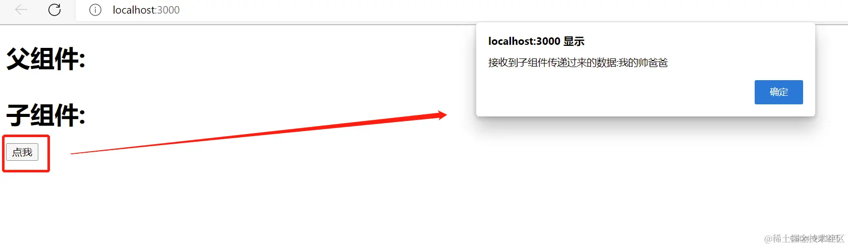 → 点击子组件的按钮 → 执行handleClick函数