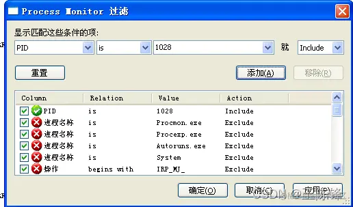 可以利用上面找到svchost的PID1028,来做过滤条件。
