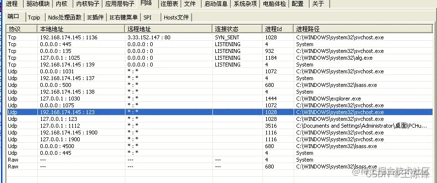 使用了pc hunter查看了网络情况,发现了1028的端口的网络迹象。