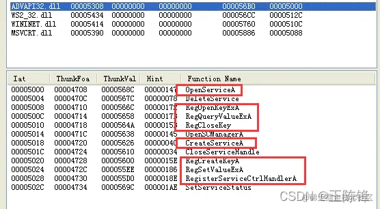 我对文件进行pe分析的时候发现一些很熟悉的dll动态链接库,恶意程序的老伙伴了。