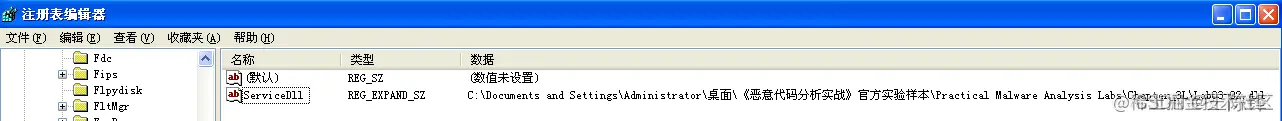 然后我们在windows自带的注册表编辑器中发现安装成功,安装了一个名为ServiceDll的文件编辑