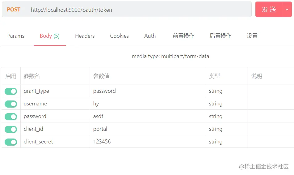 启动auth服务,调用接口 http://localhost:9000/oauth/token