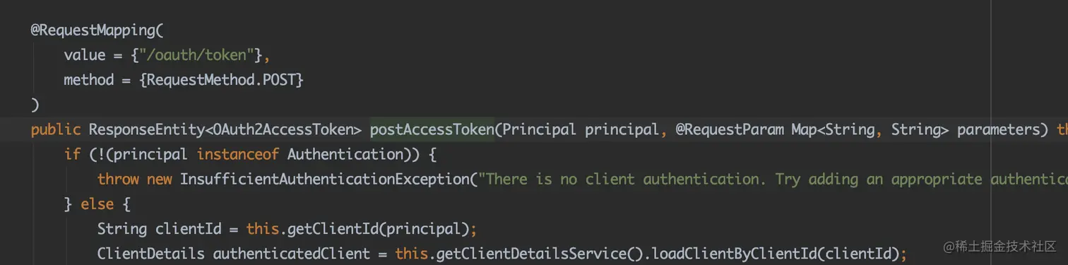 public CommonResult<TokenDTO> postAccessToken(Principal principal, @RequestParam Map<String, String> parameters) throws HttpRequestMethodNotSupportedException {