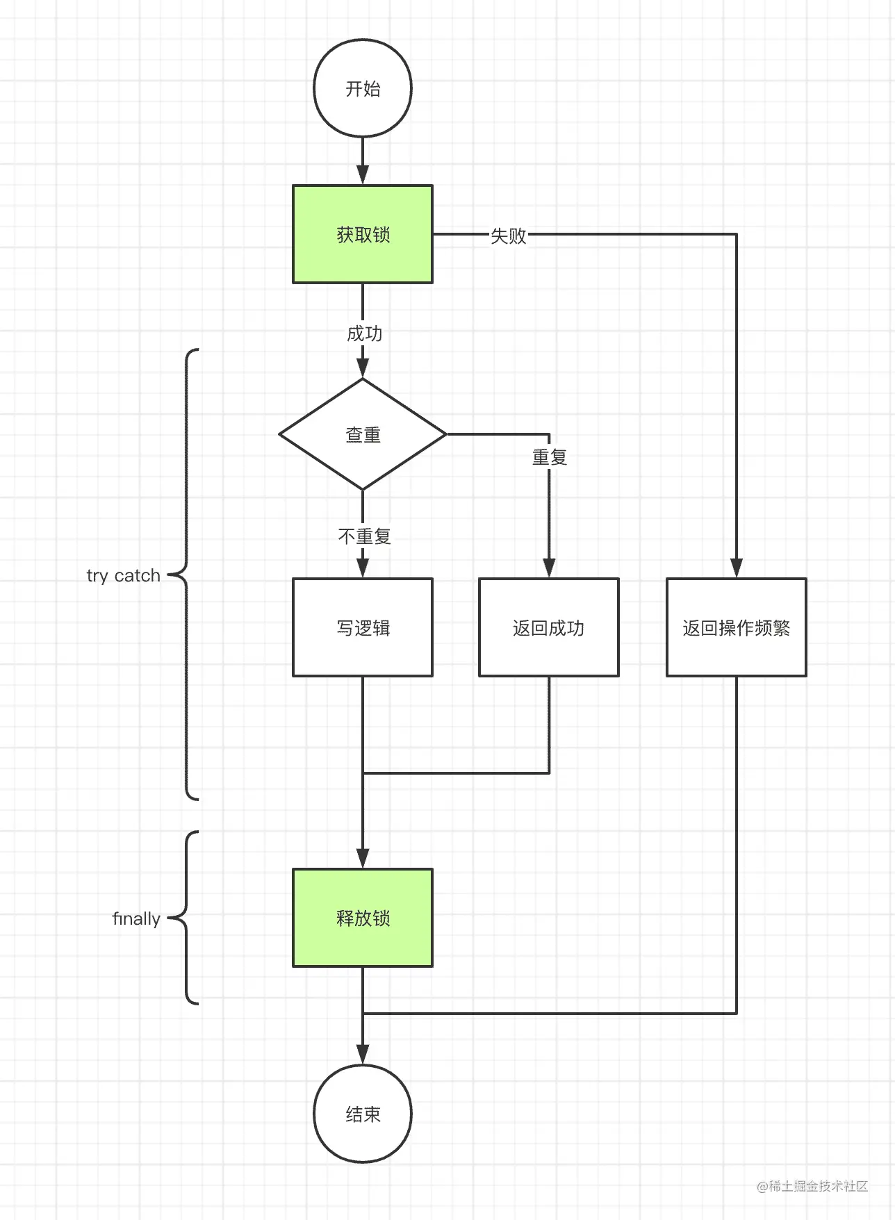幂等场景一般由查重+写入两步操作组成,两步操作组成一个最小完整逻辑,再通过缓存锁保证原子性