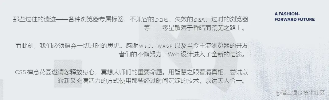 无论如何,也许你打开这个页面的时候,也会同20年前的设计师一样,收获一份对于CSS魔力的惊奇与感动: