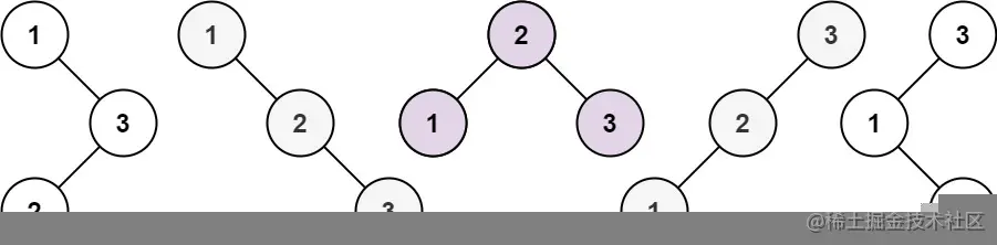 解题思路:遍历整数 n ,让每个数都去做一次根节点,然后求出每个可能然后加起来