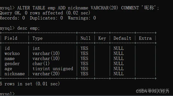 ALTER TABLE 表名 ADD 字段名 类型(长度)COMMENT '注释' 约束 ;
