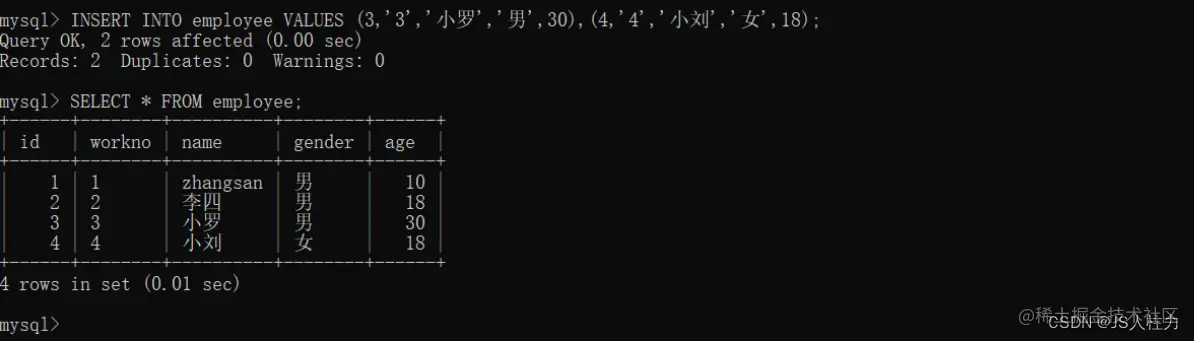 INSERT INTO 表名 VALUES (值1,值2,...),(值1,值2,...),(值1,值2,...);