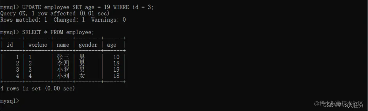 注意:修改语句的条件可以由,也可以没有,如果没有条件,则会修改整张表的所有数据。