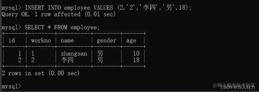 - 插入数据时,指定的字段顺序需要与值的顺序是一一对应的。