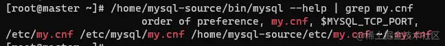执行结果为如上,当我们/etc/my.cnf和/home/mysql-source/etc/my.cnf都存在的时候,它会先读/etc/my.cnf然后再度/home/mysql-source/etc/my.cnf,且以/home/mysql-source/etc/my.cnf为准。