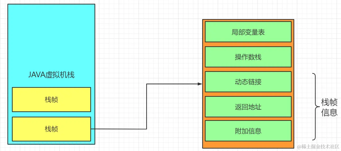 虚拟机栈是描述Java的方法执行的线程内存模型:每个方法被执行时都会同时创建一个栈帧,用于存放局部变量表,操作数栈,动态链接、方法出口信息等,每一个方法被调用直至程序执行完成的过程,就是对应一个栈帧在虚拟机栈中从入栈到出栈的过程。