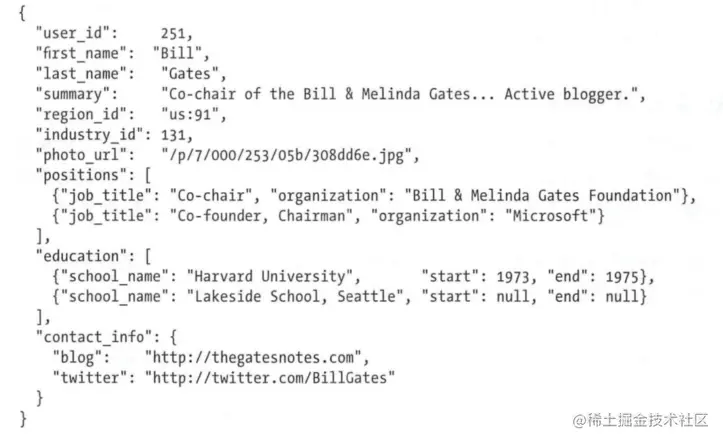 而使用NOSQL数据模型,则可以直接通过一个JSON模型,展示一个对象的多种嵌套关系。
