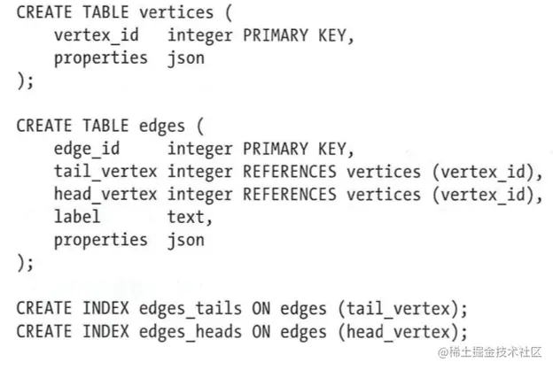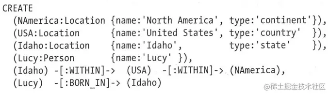 通过关系模型表示,则属性图类似下面的语句: