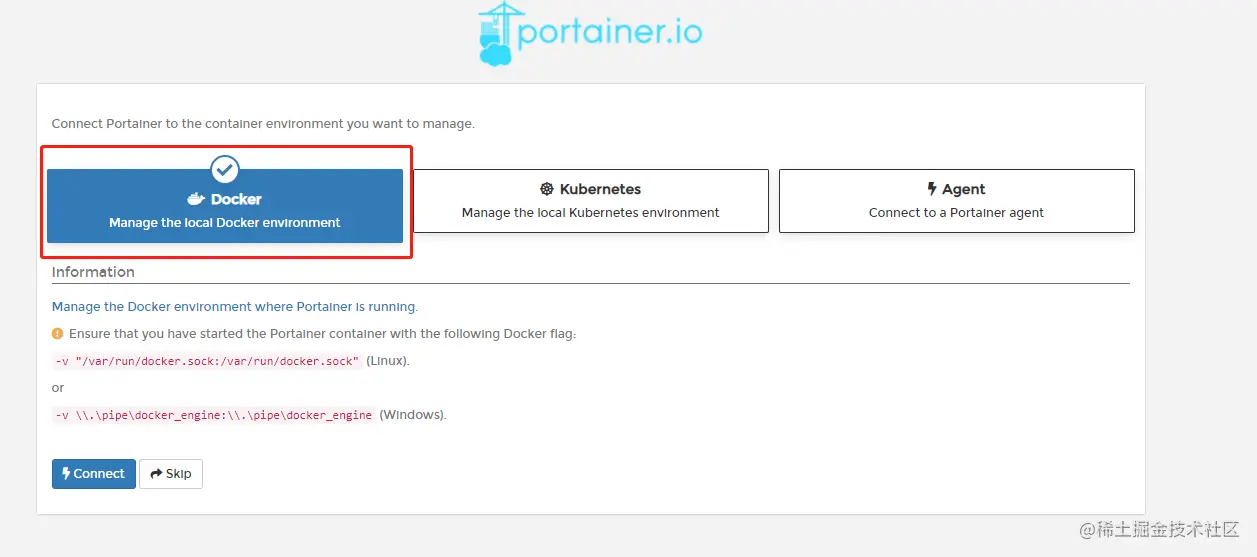 点击docker标签页,然后点击connect。