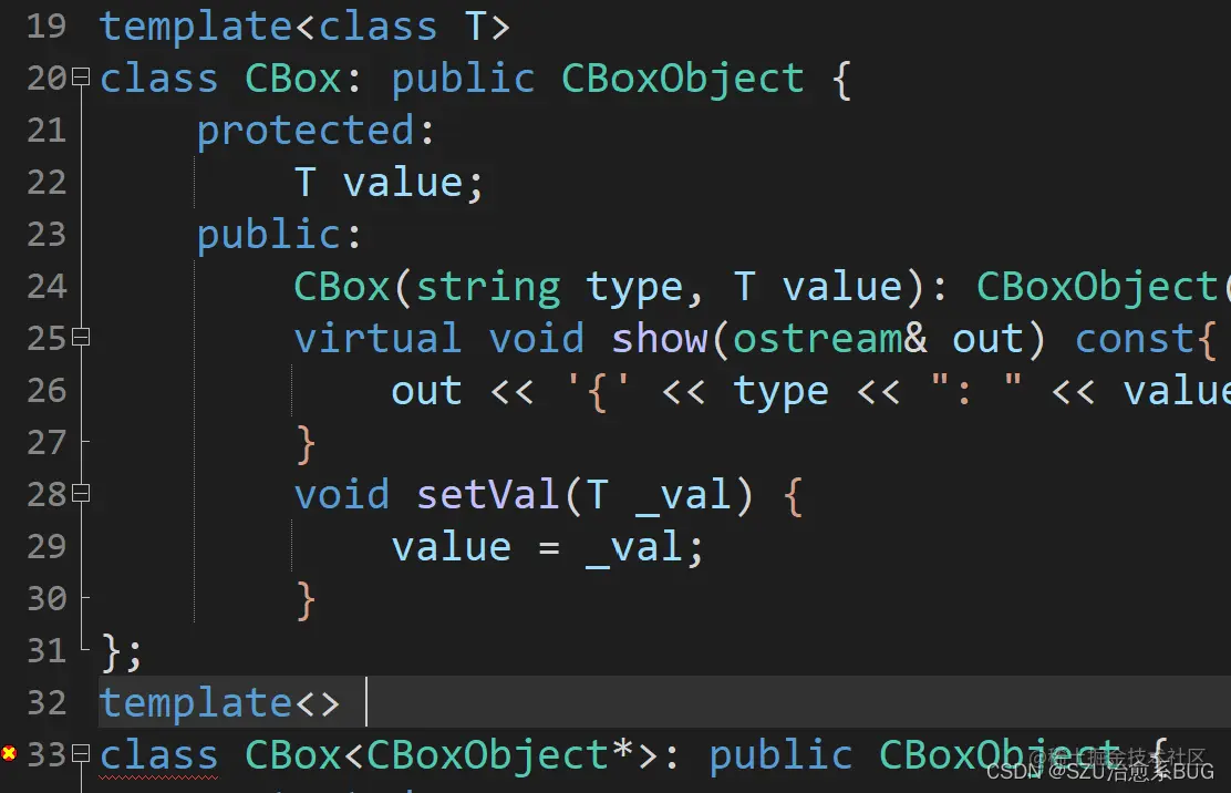 为了能够包装不同类型的元素,我们决定用模板类来实现这种盒子,并起名为CBox.