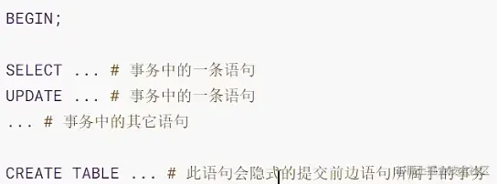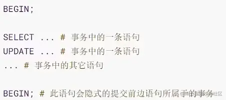 SART TRANSACTION或BEGIN开启了另一个事务,会隐式提交上一个事务 -