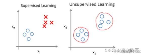 无监督学习里典型例子是聚类。聚类的目的在于把相似的东西聚在一起,而我们并不关心这一类是什么。因此,一个聚类算法通常只需要知道如何计算相似度就可以开始工作了。