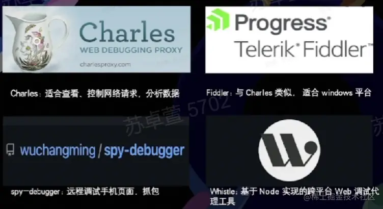 chrome devtools、charles、spy-debugger、whistle、vconsole...