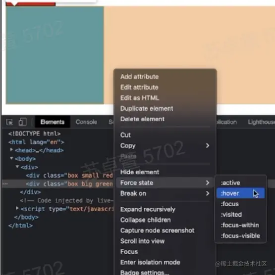 - Dom树右键菜单 选中Force State