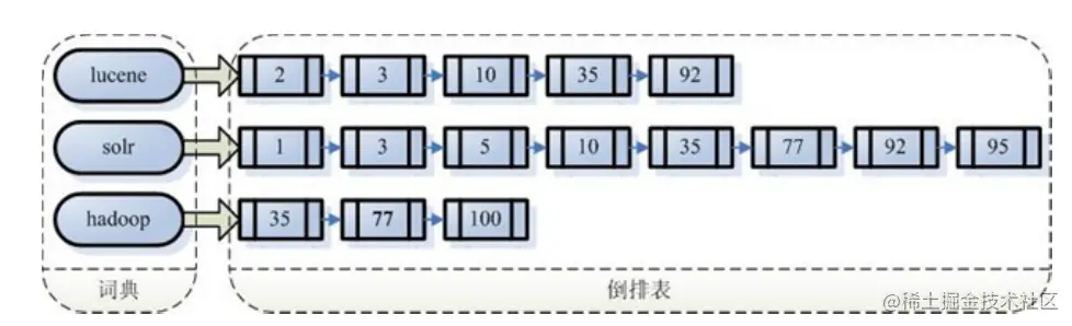 保存了词典到倒排表的映射:词(Term) –> 文档(Document)