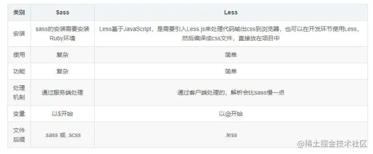 - Less 在 JS 上运行,Sass 在 Ruby 上使用。
