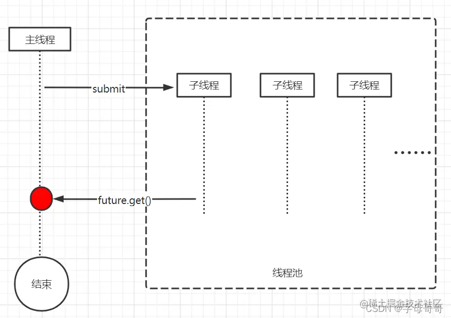 • Future的get()方法可以获取子线程执行信息,包括异常的抛出。