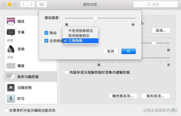 1,三指拖移-默认没有打开,还是喜欢三个手指头拖动的感觉