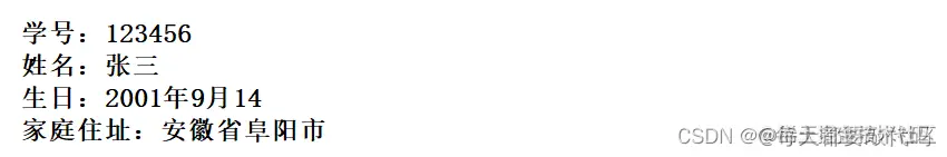❤️第一题:编写 Java 程序,输出学生的基本信息,输出结果如下图所示: