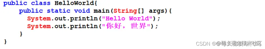 public class HelloWorld{//声明定义一个公开的类,起个名字叫HelloWorld
