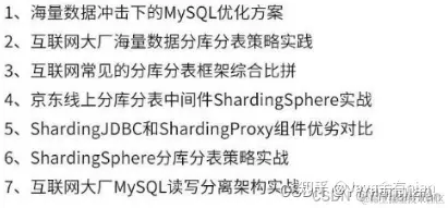 **大厂内部项目、618亿级数据优化实践、国内顶级电商数据处理架构……**让你积累到可用于面试和工作的经验。快速提高分析与优化大型系统线上环境Mysql各种性能问题的能力以及构建大型高并发高可用海量数据处理架构的能力。